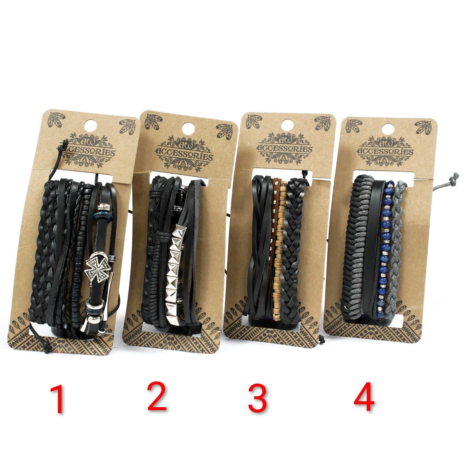 Men's Bracelet Sets made from leather and metal charms with great designs.