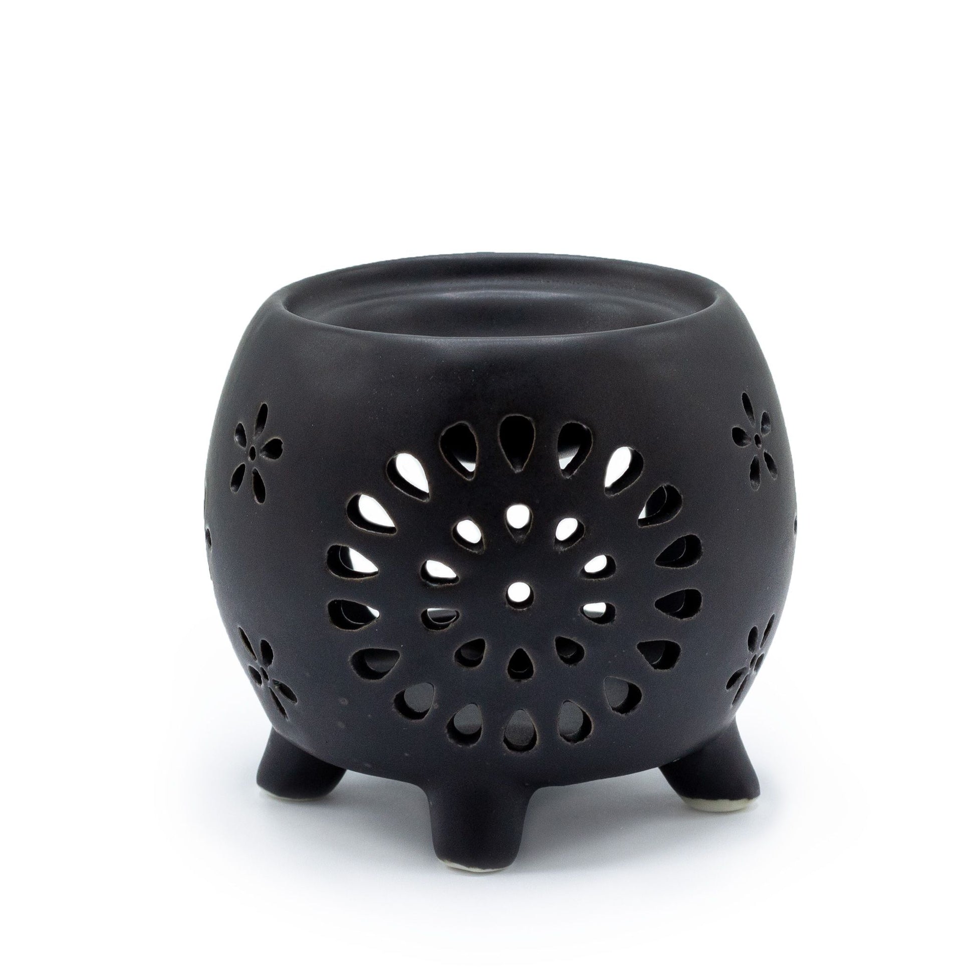 Squat Pot Oil Burner Flower Burst - Matt Black